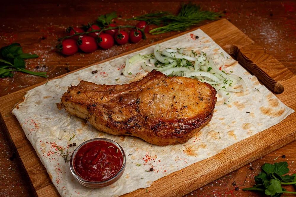 100 г./180 ₽, Подается с лавашом, луком и зеленью